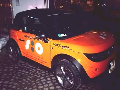 Elektromobil der Ostalb steht vor dem Rathaus der Stadt Aalen.