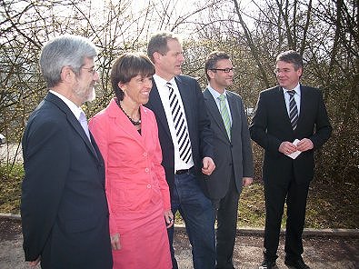 Ostalbklinik: Von links: Landrat Klaus Pavel, Minis-terin Stolz und rechts