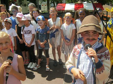 die Kinder ihren Vortrag begonnen, denn der "Tod" in Schwarz wurde schon