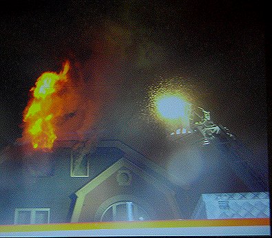 wenige Minuten später am Brandort eintraf, schlugen die Flammen bereits