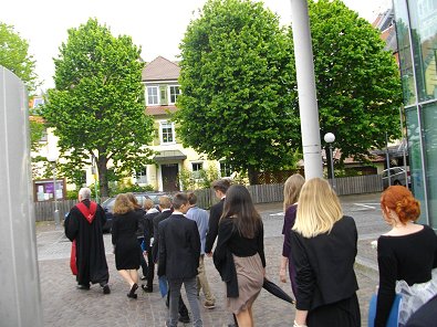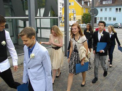 Tages: 21 Konfirmanden auf dem weg zum Gottesdienst vorbei am Dekanat Aalen.