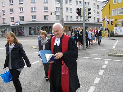 schritten die Konfirmanden wie gebeten zum Gottesdient...