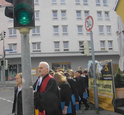 der Stuttgarter Straße überfahren wird - auch Pfarrer und Jugendliche