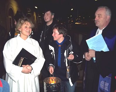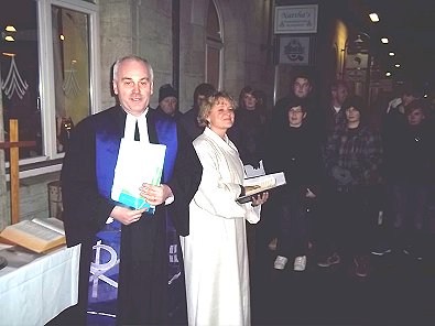 Pfarrer Richter und Angelika Keßler nach der Licht-Ankunft.