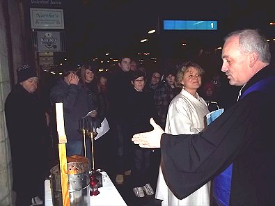 Friedenslicht: Pfarrer Richter und Bahnhofsmission.