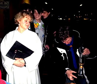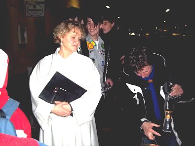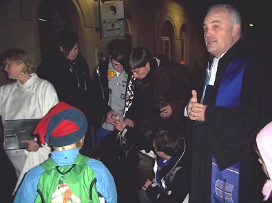 die Treppe hoch und übergaben das Friedens-licht aus Betlehem - allerdings