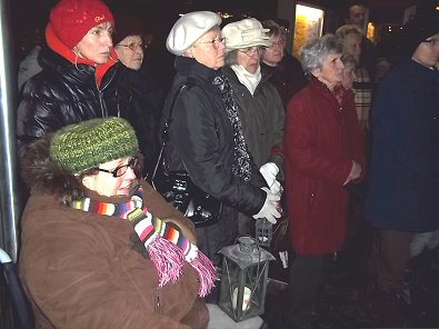 einhundert Erwachsene, Gläubige und Kinder mit Laternen bewaffnet und