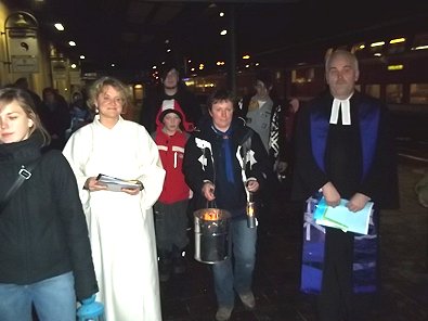 wurde Andacht auf dem Bahnsteig im Gebet gestaltet.
