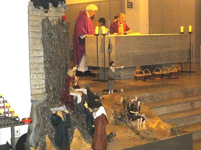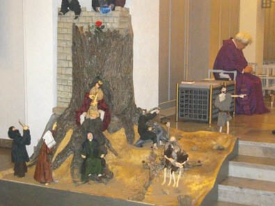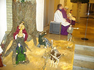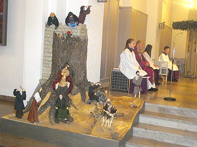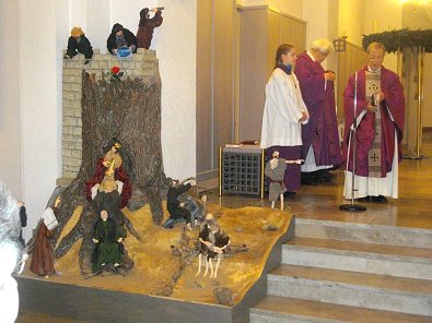 In der gefüllten Stephanskirche steht in der Ecke Köders Krippe die wohl die Geburt des