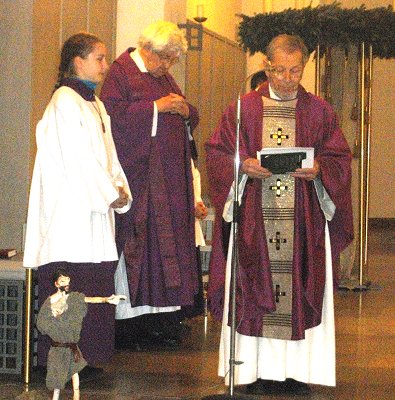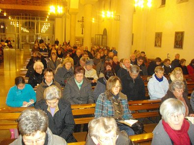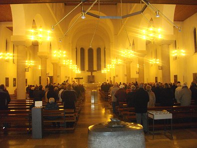 gegenüber dem Bürgerhaus lauschte in der katholischen Messe Pfarrer Sieger
