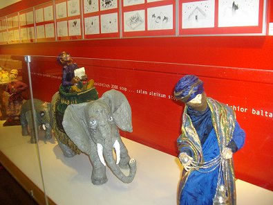 aber mit etwa 100 seiner Zeichnungen und Krippen-Figuren gegenüber im
