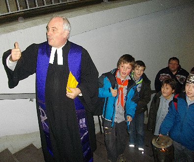 Pfarrer Richter zeigt den Daumen