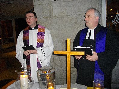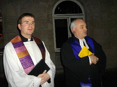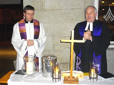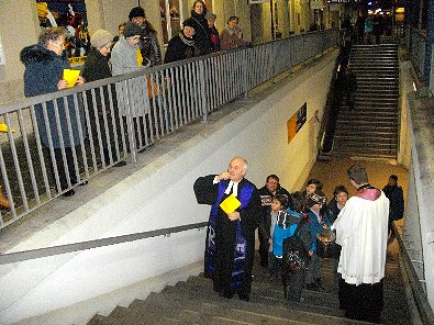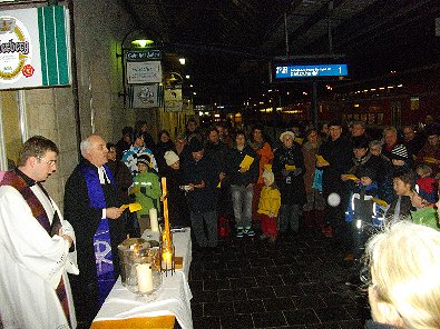 evangelische Pfarrer Richter gemeinsam beim Gottesdienst auf Gleis eins des