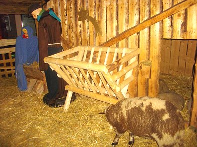 Maria und Josef und die Krippe: Im Stall noch die Schafe