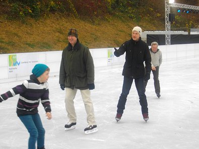 pünktlich um 10 Uhr auf der Eisbahn: Von lin-ks: Stadtwerkedirektor Cord