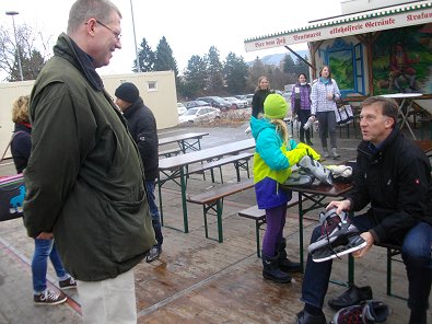 Arbeitskollegen zu sportlichen Schlittschuh-Runden verabreden. Und wer keine