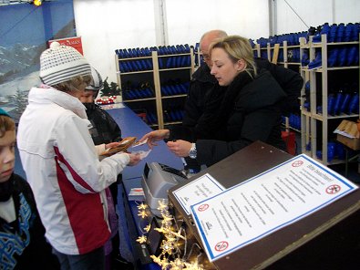 erworben werden. Das Personal an der Eisbahn berät die Besucher hierzu