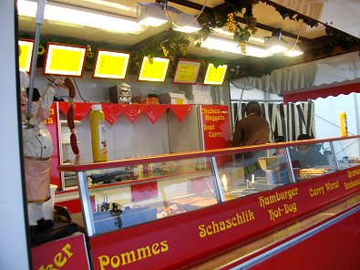 Im Speisenangebot gibt es Bratwurst, Hamburger, Pommes Frites und vieles
