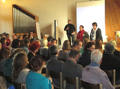Zudem bekamen die Diskutanten die Gelegenheit die am Eingang ausgehändigten