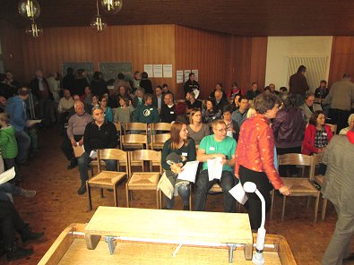 Versammlung auflösen und zufriedene Bürger hinterlassen. Auf die AIZ-Frage