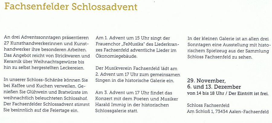 zum Weihnachtsfest der Stiftung Schloß Fachs-enfeld. So steht es in der