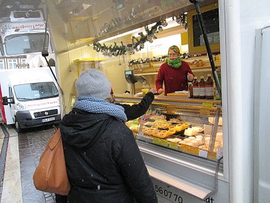 sei doch so, sagte eine Orangen-Käuferin der AIZ im dichten Schneegestöber,