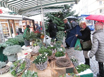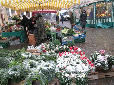 Marktplatz in weiß eingetaucht: An der Ecke vor dem Cafe standen wieder wie
