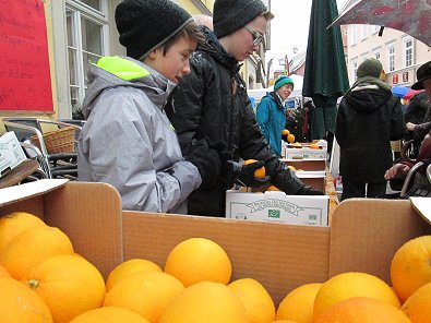 Orangen verkauft wie Weltmeister für eine gute Sache: Die Konfirmanden und