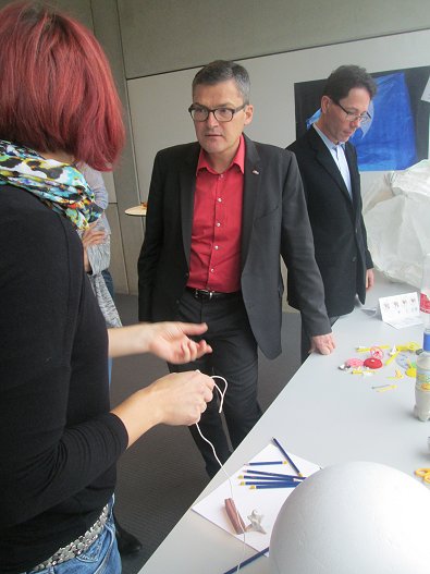 (Leiterin Explo-rino), Stadtwerke-Direktor Cord Müller und Angela Grether