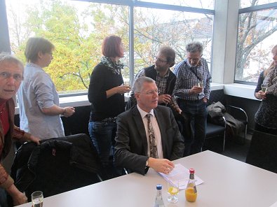 in froher Runde mit Rektor Professor Gerhard Schneider, Dr. Susanne Garreis