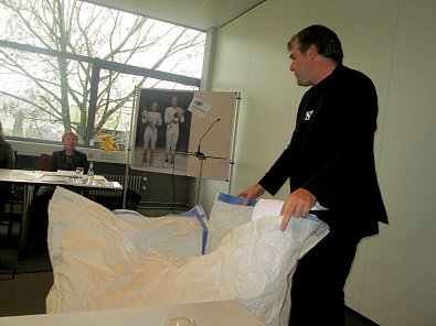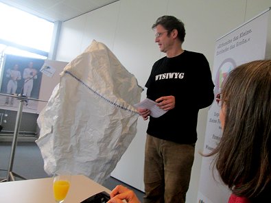 einem grßen übergestülpten weißen Sack demonstrieren demonstrierten.