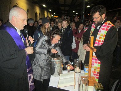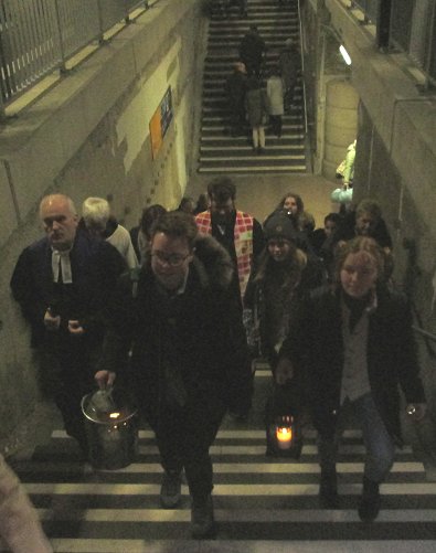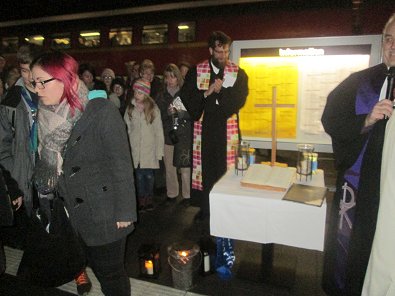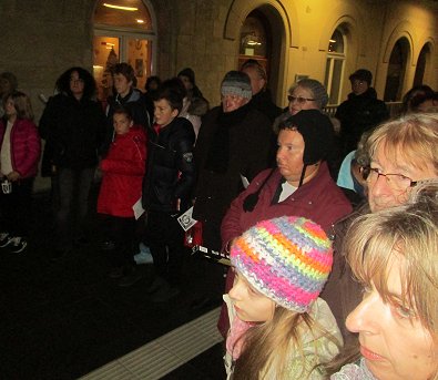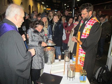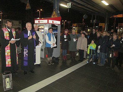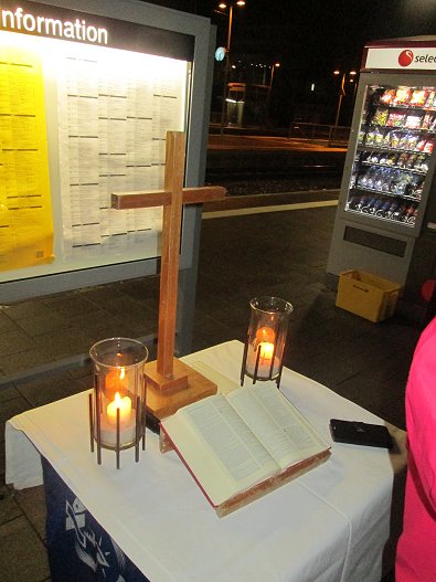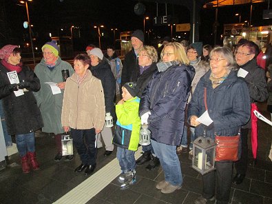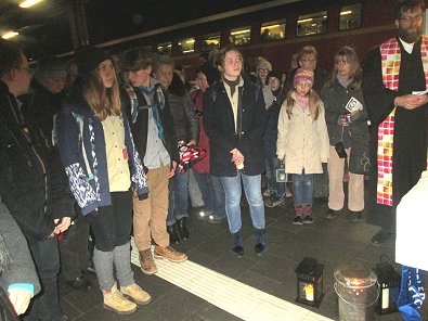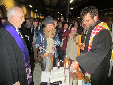 Aalen Hbf durch die Aalener Pfadfinder und das Anzünden von hunderten Kerzen