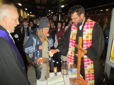Friedenslichtes aus Bethlehem am Sonntagabend im Aalener Hbf.