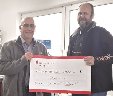 Spendenscheck über 1000 € an Lothar Schiele von Segeltaxi