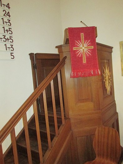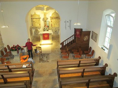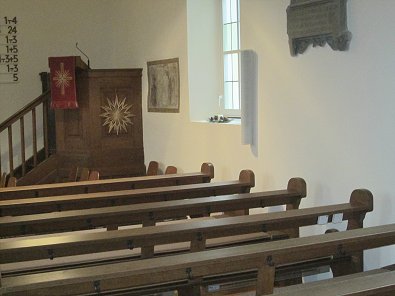 der renovierten kleinen Kirche der Evangelischen. Die evangelische