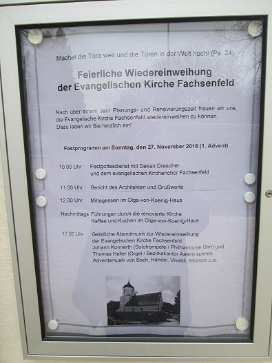 evangelische Kirche in Fachsenfeld ist am Sonntag ab 10 Uhr.