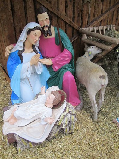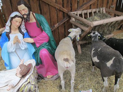 Tageslicht:Drei Schafe bewachen Gotteskind