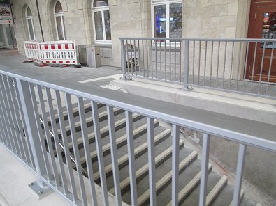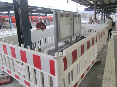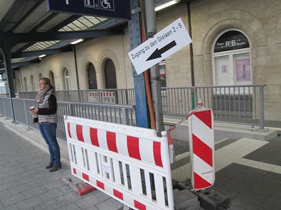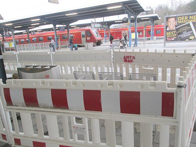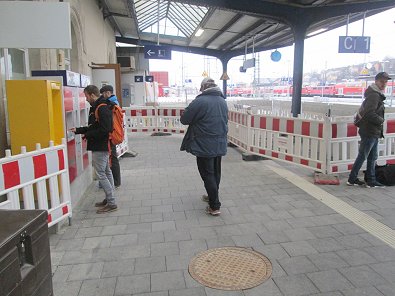 Stuttgart vom unsinnigen Gleis eins aufs Gleis zwei kommen. Die Absperrungen