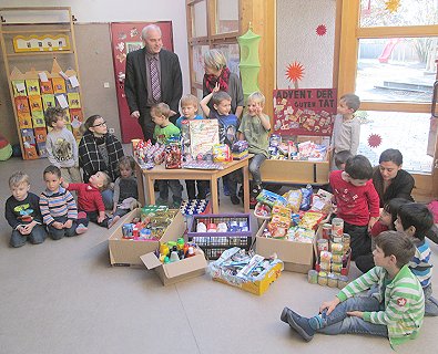 Fotostudie bei der Übergabe der Geschenke der Kinder am Mitt-woch im
