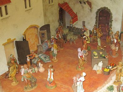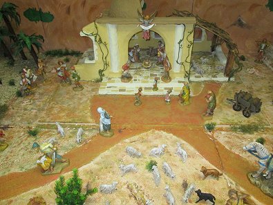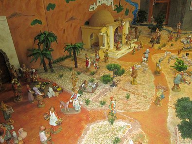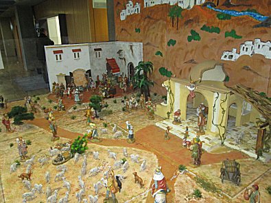 sehr: Die große Krippe im Foyer weist hinter Plastikplatten geschützt wieder
