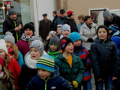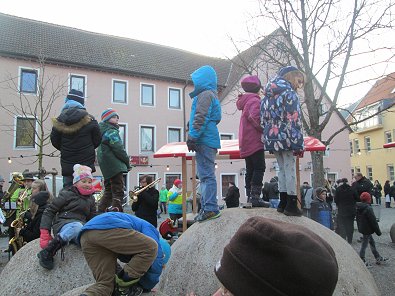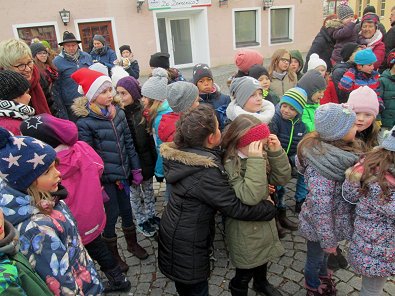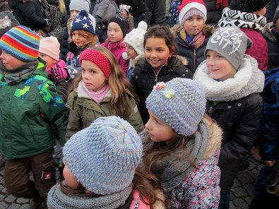 Kinder die sich vom warmen Wohnzimmer auf den Rathausplatz wagten wollten