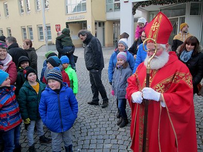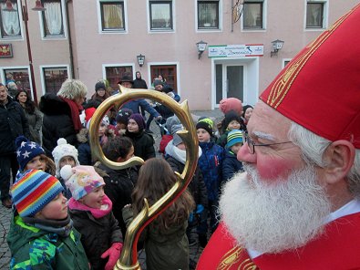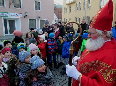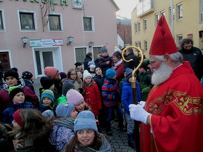 Nikolaus abgeliefert. Der Nikolaus selbst ist mit Kindern