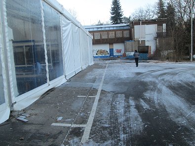 Dabei war das einige Hindernis der Schandfleck hinterm Eislauf-Zelt von der