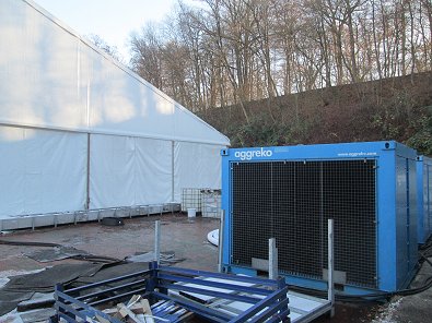 Kühlschlauchteppichs und 10.000 Litern Kühlmittel für eine gleich bleibende