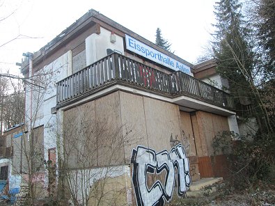 alten Eislaufhalle die niemand abreißen möchte und Dank von aufgemalten