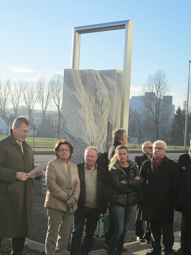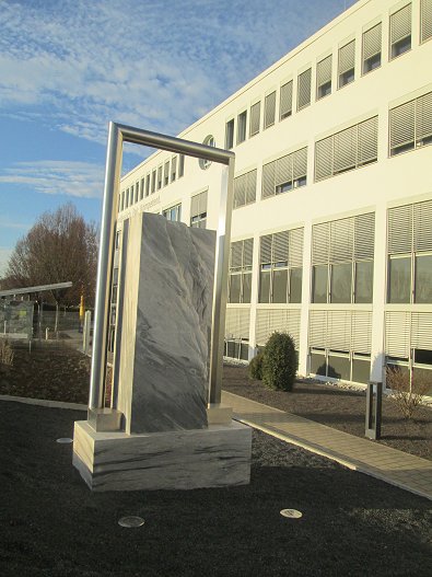 schwerenMarmor-Sockelstein, der vom Künstler Rudolf Kurz ausgesucht und