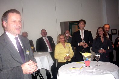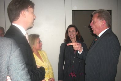 FDP-Prominenz hier mit der Kreisvorsitzen-den am Tisch des Professors aus