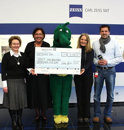 Zeiss Organisationsteam überreichen die Spende an Tabaluga, das