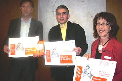 (rechts) u. Chef der Stadtbibliothek bei Pressekonferenz