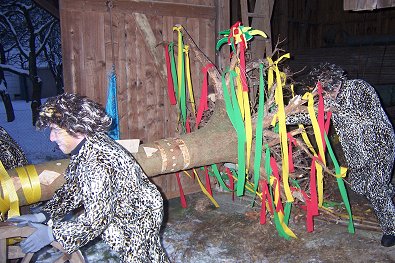 Zuammen mit NAPO-Männern erstmals Narrenbaum aufgestellt